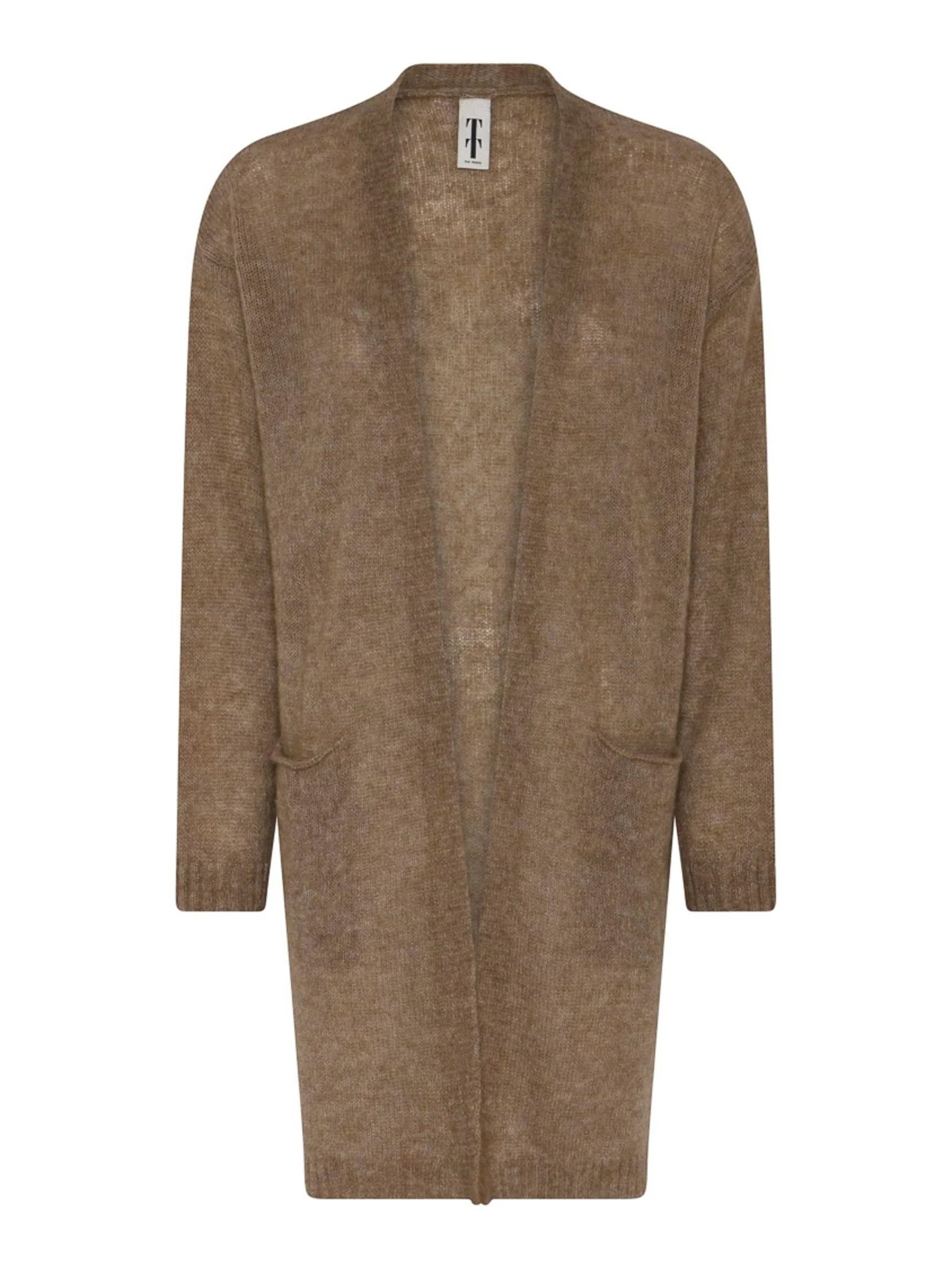 Locker geschnittene ganz leichte Strickjacke mit Kragen und aufgesetzten Taschen ohne Knöpfe in einer super coolen, angesagten Farbe.