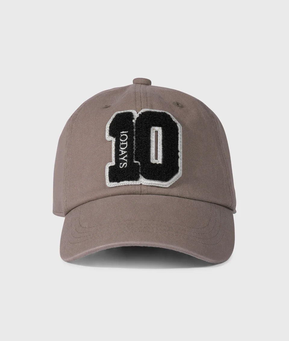Baumwollmütze mit einem „10“-Aufnäher an der Vorderseite. Mit einer Mini-Stripes-Stickerei hinten links und einem verstellbaren Gürtel.