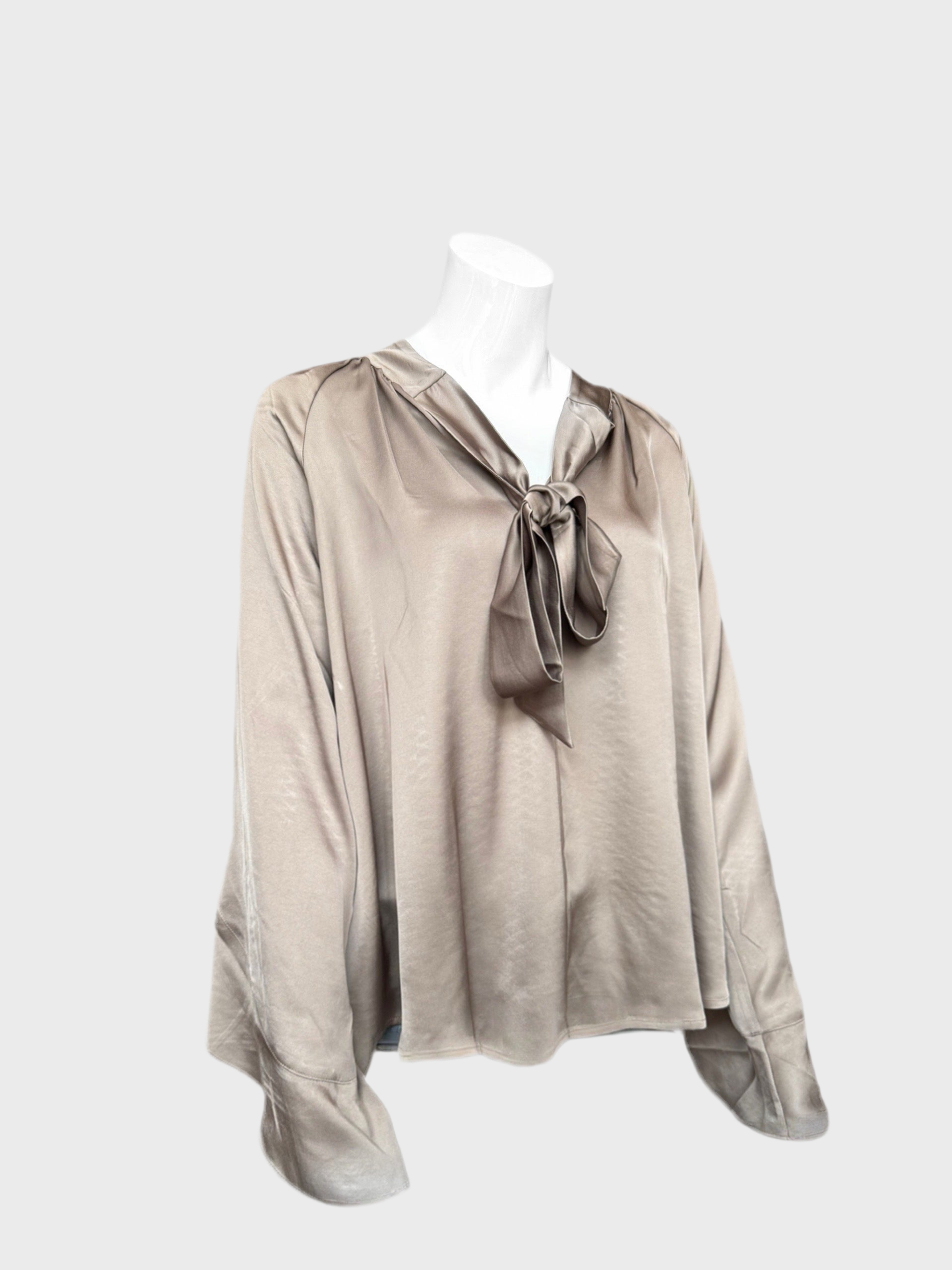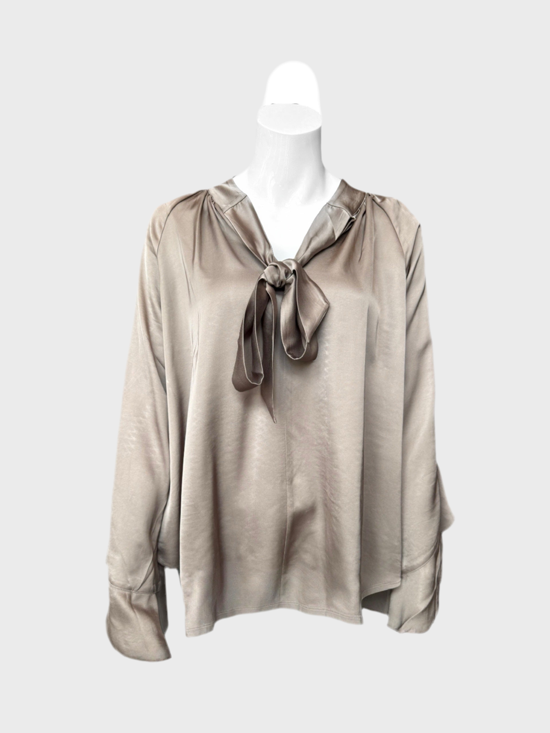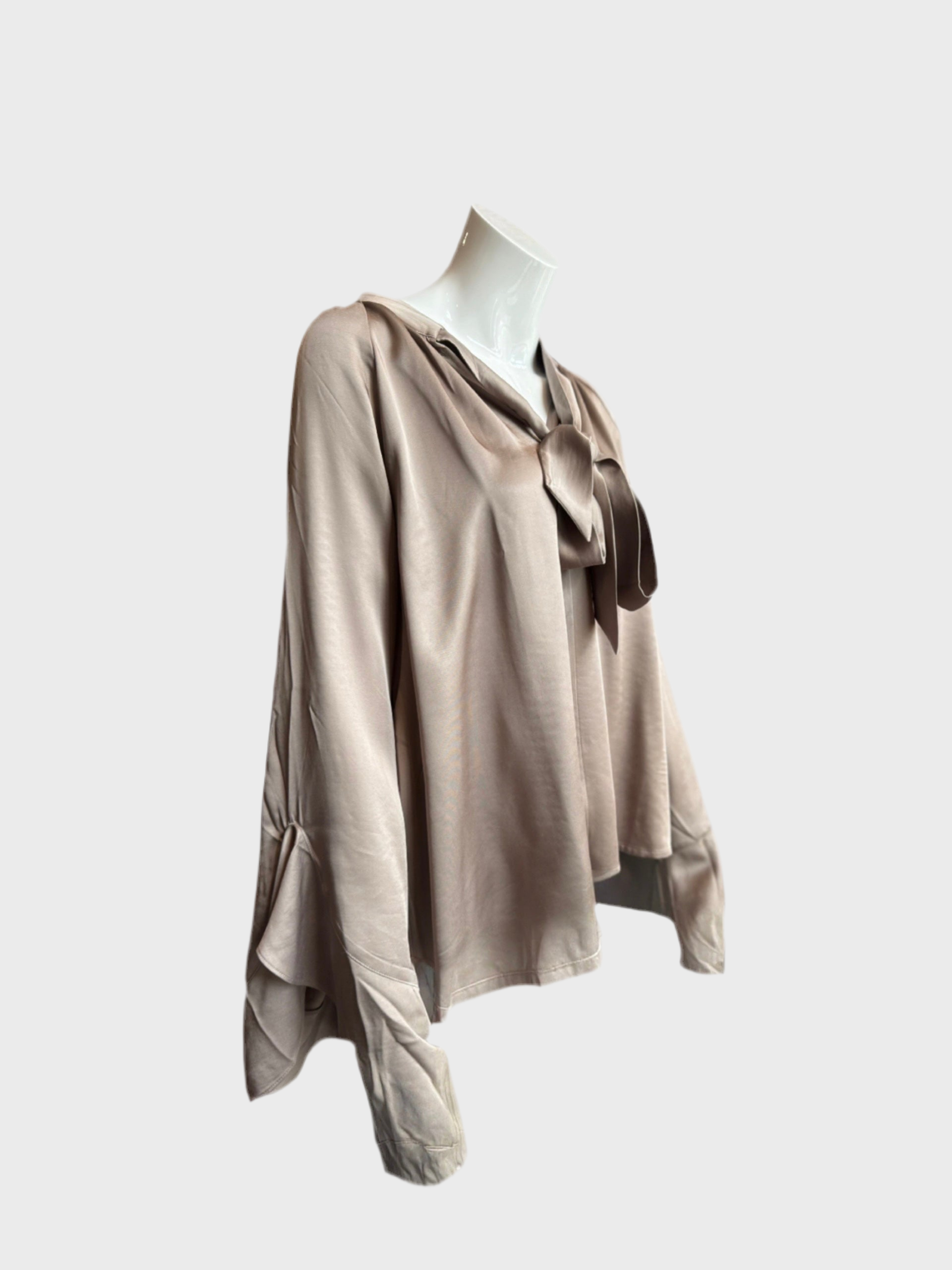 Verspielte Shirtbluse mit Schluppe und Ärmel mit großzügigen Volants. Fließende Satin-Ware